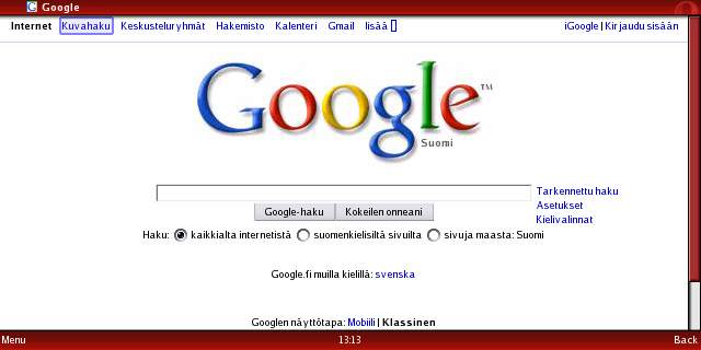 Sinun kannattaa ladata Opera Mini 4.1, sillä se on paljon nopeampi ja kevyempi selain kuin laitteen oma. Myös mainittavaa on, että GMail ja Wikipedia skaalautuvat täydellisesti laitteen näytölle.