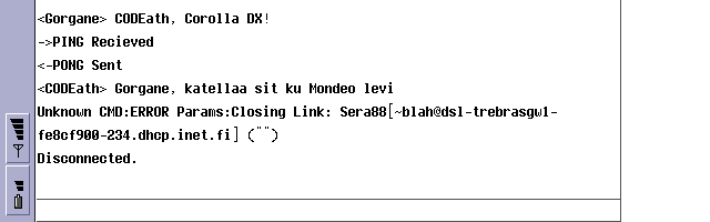 | 9IRC | A small IRC client, though a bit up in the air. The program has to be launched from its installation folder, and it doesn't have a fancy UI, but it works! I tested it on my ISP's IRCnet server on October 2009, and the bloody thing connected. It was nice to chat with others via the DLR-2L serial cable connection with staggering 115,200 bps. |  |