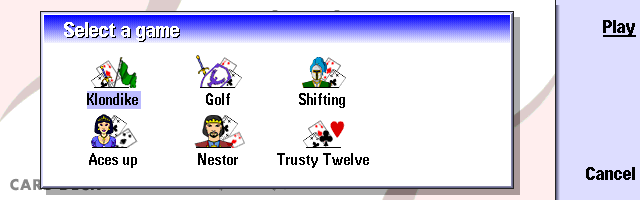 | Card Deck | A game that contains six different card games: Klondike, Golf, Shifting, Aces Up, Nestor and Trusty Twelve. |