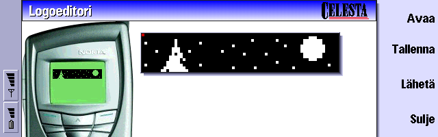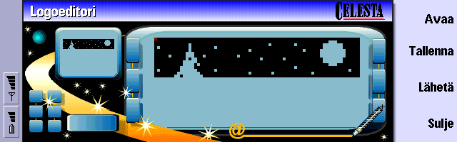 | Celesta myStyle | This is a weird one - and certainly not in a bad way. This application lets you make a custom logo for those monochrome phones, including the one on the cover of your 9210! Celesta mBusiness Oy really did an amazing job because this can also be used to make picture messages, CLI icons and flash SMSs. Really deep programming there, boys. |