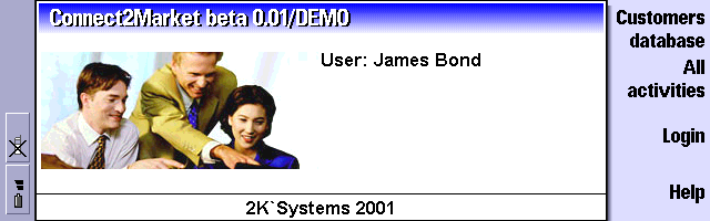 | Connect2Market | Allows you to create a database of business clients. This demo version contains three sample accounts, and one of them is named "James Bond". Wasn't too hard to figure out the password for that one :) |