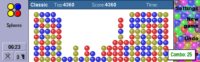 | Spheres | Search for a group of balls of the same color and plop them. I was very addicted to this game once. |  |